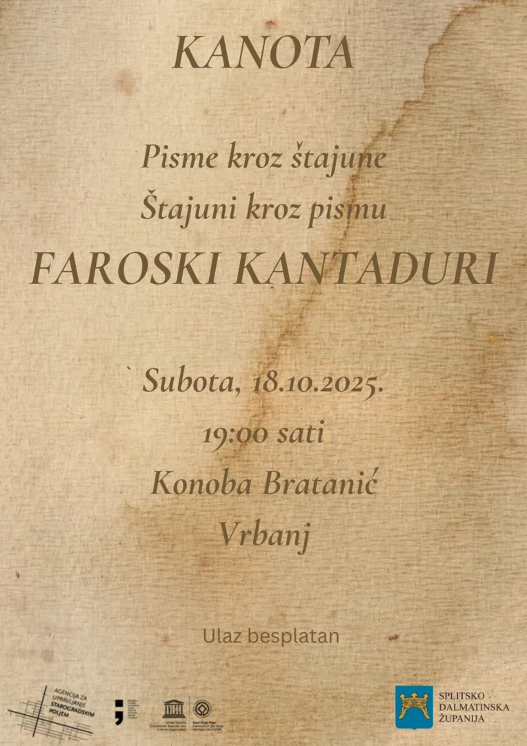 Tijekom večeri imat ćete priliku upoznati se s radom Faroskih kantadura, čuti priču o nastanku ovog, ali i mnogih drugih njihovih projekata, te uživati u pjesmi, druženju i toplini dalmatinskog ugođaja.