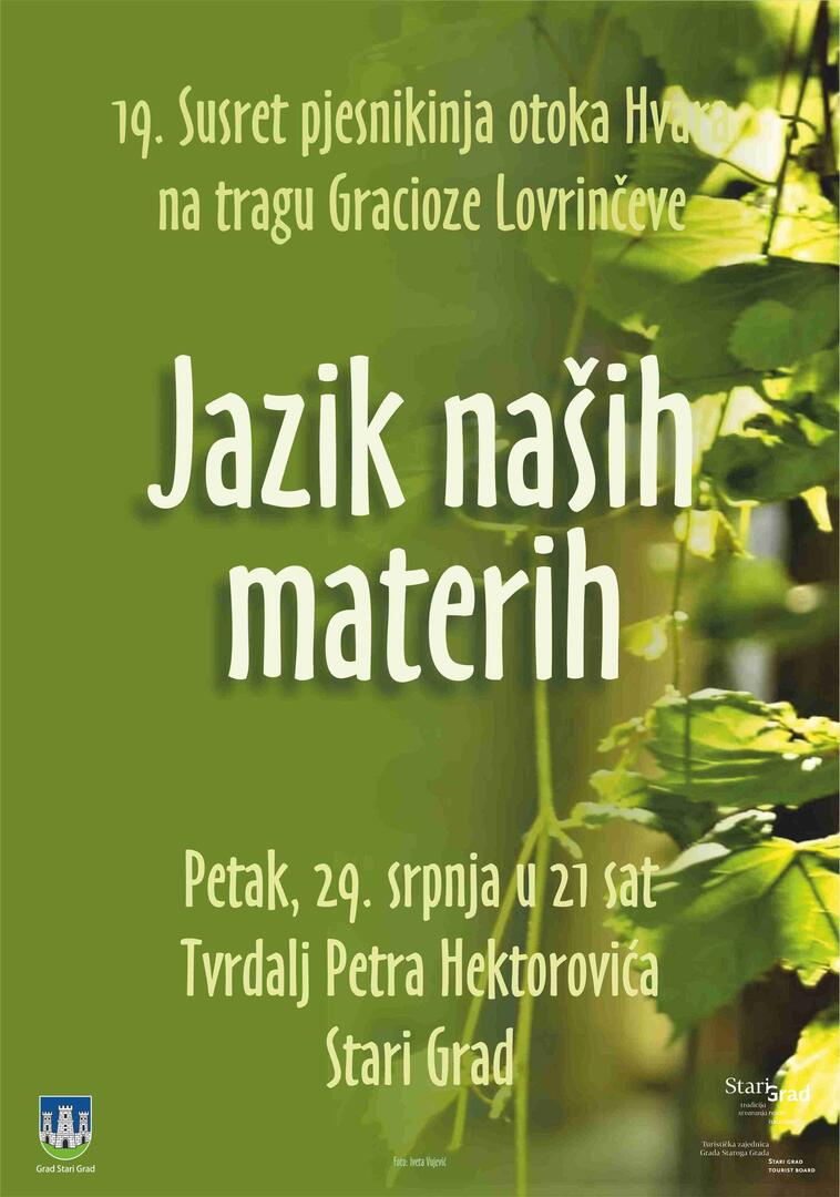 Pjesnička večer čakavske poezije pod nazivom Susret pjesnikinja otoka Hvara na tragu Gracioze Lovrinčeve „Jazik naših materih“ održat će se 29. srpnja 2022., u Hektorovićevom Tvrdalju u 21 sat. Nastupit će 12 čakavskih pjesnikinja sa otoka Hvara koje pišu izričajem svoga sela: Dobrila Tomičić, Katja (Beba ) Stančić, Briseida Udovičić, Marica Buratović, Ivana Mateljan, Katarina Makjanić, Svjetlana Caric, Ivana Milojka Malić, Nela Vrkljan, Nila Glasinović, Antonela Barbić, Julija Milatić. Svoje stihove posebno će predstaviti pjesnik Nikola Kuzmičić.