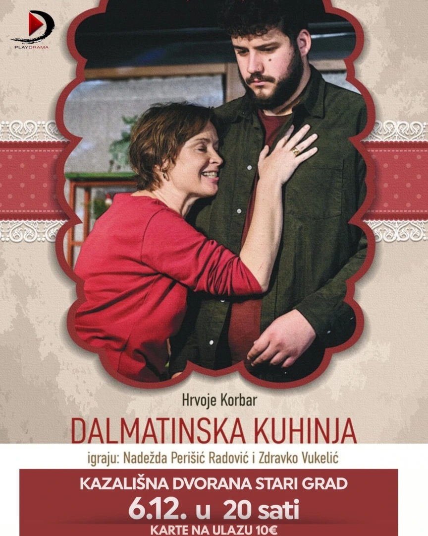 U subotu, 6. prosinca 2025. godine u Kazališnoj dvorani s početkom u 20:00 sati održat će se predstava Hrvoje Korbar: DALMATINSKA KUHINJA.