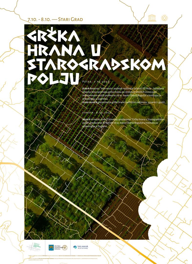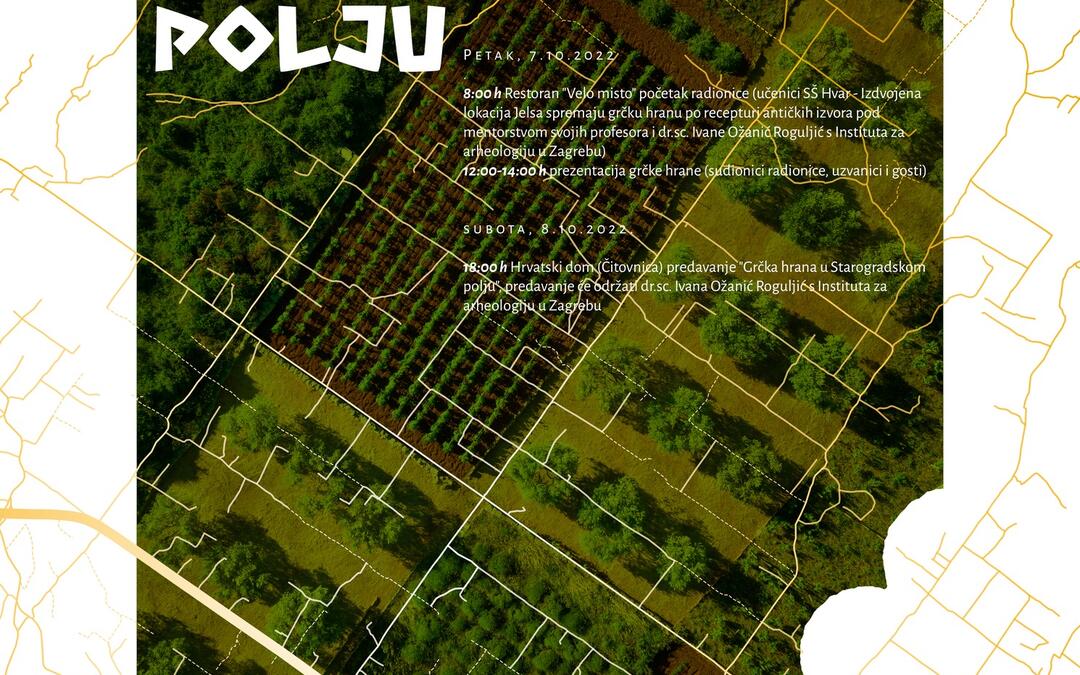 8. listopada (subota) - 18:00 h u Hrvatskom domu Čitovnici predavanje "Grčka hrana u Starogradskom polju". Predavanje će održati dr. sc. Ivana Ožanić Roguljić, s Instituta za arheologiju u Zagrebu.