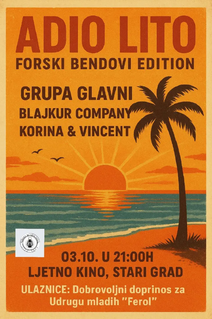 Početak ove naše intimne otočke zabavice je u 21:00h, a lokacija je Ljetno kino. Ponesite puno dobre volje, osmijeha i pozitive i homo se lipo svi skupa zabavit za kroj …