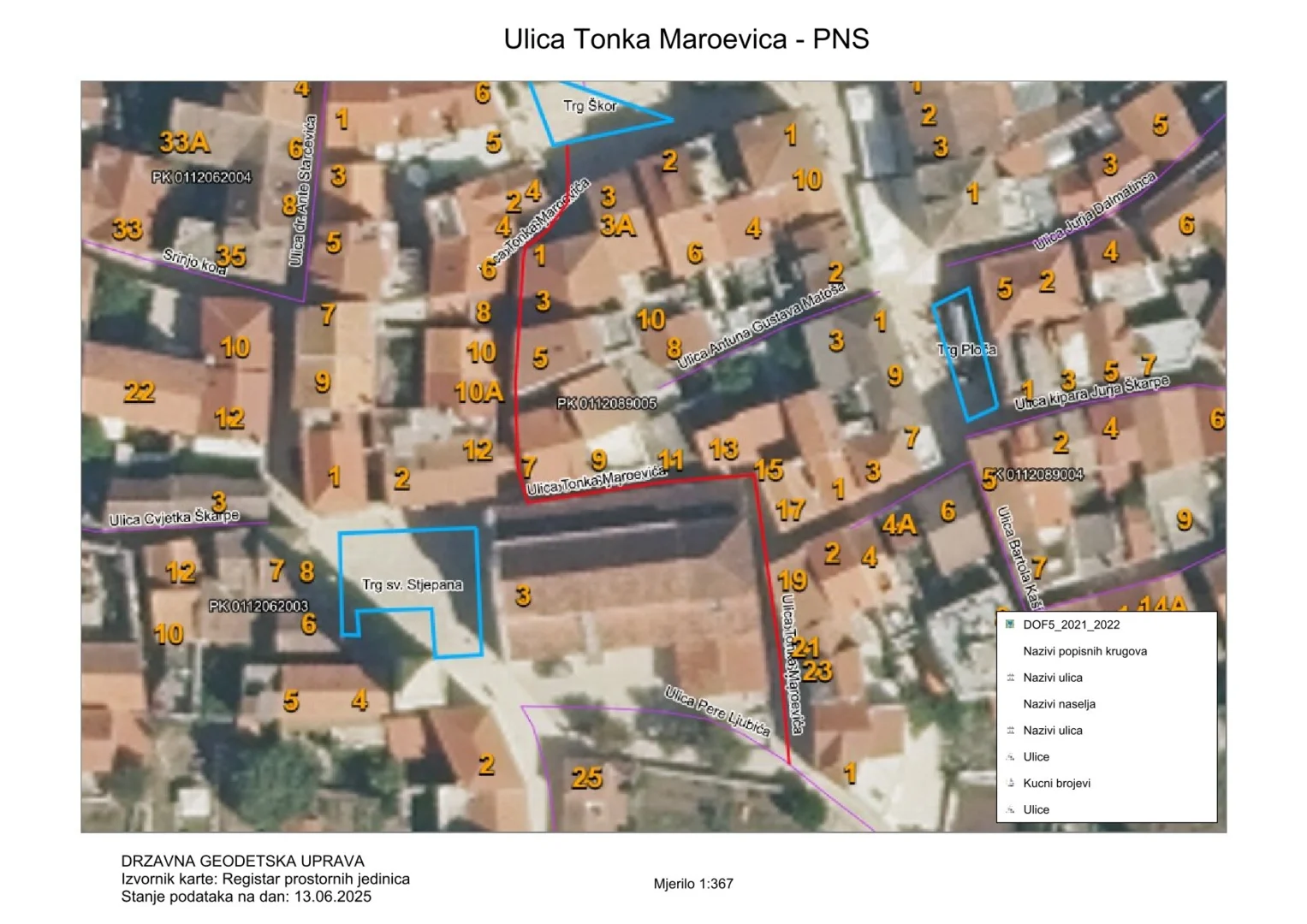 Obavještavamo stanare, odnosno vlasnike kuća na adresi ulice Kod sv. Stjepana da je temeljem odluke o izmjeni Odluke o određivanju imena ulicama i trgovima u Starome Gradu od 28. srpnja 2021. godine provedena promjena unutar Registra prostornih jedinica – promijenjeno je ime ulice Kod sv. Stjepana u Ulica Tonka Maroevića.